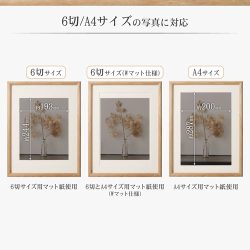 | 対応写真・プリントサイズ | 6切サイズ:W203×H254mm A4サイズ:W210×H297mm |