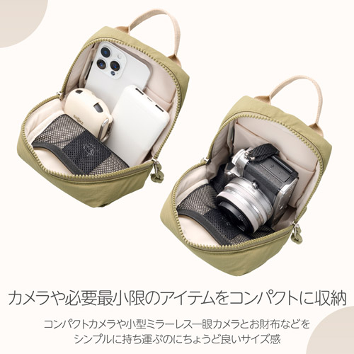 コンパクトカメラとスマートフォンなど、必要最小限のものを収納するのにちょうど良いサイズ感で、毎日のお出かけにぴったりです。