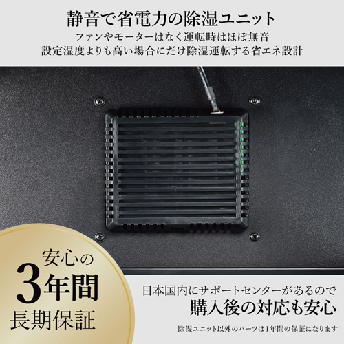 安心の国内サポートに加え、除湿ユニットはメーカー3年間保証つき。