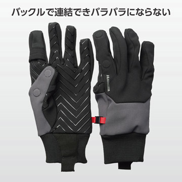 手になじむ立体裁断![]() 手を軽く握った自然な形や指の曲がりを考慮した立体裁断で形成されています。手にぴったりとフィットして生地の突っ張りが少なく、指を曲げたり物を握ったりする動作がスムーズです。カメラのボタン操作や細かい作業も快適に行え、手とグローブの間に隙間ができにくいため、保温効果も高まります。さらに、手のひらに施された滑り止めプリントが、大切な機材をしっかりとホールドします。 指先が開いてスムーズな作業をサポート![]() 親指と人差し指の先端が開く構造なので、カメラのボタン操作など、繊細な作業もスムーズに行えます。開いた先端部分は邪魔にならないようマグネットでしっかり固定できます。面ファスナーのように衣服や肌を傷つけてしまう心配もありません。 タッチパネルもそのまま操作![]() 親指と人差し指の先端には導電性素材を使用しているため、グローブをつけたままカメラやスマートフォンのタッチパネルを操作できます。 雨風や寒さから手を守る![]() メイン生地に施された撥水加工が小雨程度の水滴を弾き、裏地のフリース素材が暖かさを保ちます。※完全防水ではありません。 しっかりフィットし冷気の侵入を防ぐ![]() 手首はリブ切替デザインになっているため、冷気の侵入を防ぎ、フィット感が高まります。装着時につまんで装着しやすいループが付いています。 バックルで連結可能![]() 左右のグローブをバックルで連結できるため、持ち運び時にバラバラにならず、紛失を防ぎます。 使用イメージ![]() 画像はグレー、Mサイズ 使用イメージ![]() 画像はグレー、Mサイズ 使用イメージ![]() 画像はグレー、Mサイズ サイズ表![]() ※手長や指の長さ、太さには個人差があるため、サイズ表はあくまでも目安としてご参照ください。 パッケージイメージ![]() 画像はグレー、Mサイズ 洗濯表示![]() |