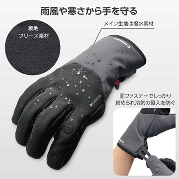 グースダウンに匹敵する高性能断熱素材「PrimaLoft(R) Gold Insulation」![]() 中綿に超微細マイクロファイバーを用いた高性能断熱素材「PrimaLoft(R) Gold Insulation」を採用しています。ダウン(羽毛)に匹敵する優れた保温性、軽量性、柔軟性を持ちながら、さらにダウンには無い撥水性を備えているため、濡れても断熱性を失わず乾燥時に比べて98%の保温性を維持します。 手になじむ立体裁断![]() 手を軽く握った自然な形や指の曲がりを考慮した立体裁断で形成されています。手にぴったりとフィットして生地の突っ張りが少なく、指を曲げたり物を握ったりする動作がスムーズです。カメラのボタン操作や細かい作業も快適に行え、手とグローブの間に隙間ができにくいため、保温効果も高まります。さらに、手のひらに施された滑り止めプリントが、大切な機材をしっかりとホールドします。 指先が開いてスムーズな作業をサポート![]() 親指と人差し指の先端が開く構造なので、カメラのボタン操作など、繊細な作業もスムーズに行えます。開いた先端部分は邪魔にならないようマグネットでしっかり固定できます。面ファスナーのように衣服や肌を傷つけてしまう心配もありません。 雨風や寒さから手を守る![]() メイン生地に施された撥水加工が小雨程度の水滴を弾き、裏地のフリース素材が暖かさを保ちます。※完全防水ではありません。 しっかりフィットし冷気の侵入を防ぐ![]() 手首部分には面ファスナー式のバンドを設けており、しっかり締めることで冷気の侵入を防ぎ、保温性を高めます。衣類に付きにくい面ファスナーを採用しています。 バックルで連結可能![]() 左右のグローブをバックルで連結できるため、持ち運び時にバラバラにならず、紛失を防ぎます。 使用イメージ![]() 画像はグレー、Mサイズ 使用イメージ![]() 画像はグレー、Mサイズ 使用イメージ![]() 画像はグレー、Mサイズ サイズ表![]() ※手長や指の長さ、太さには個人差があるため、サイズ表はあくまでも目安としてご参照ください。 パッケージイメージ![]() 画像はグレー、Mサイズ 洗濯表示![]() |